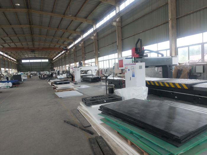 公司現擁有5400噸熱壓機6臺,能生產三種規格的超高分子聚乙烯板,可根據用戶要求的顏色生產加工,擁有大型的數控車床、銑床數臺,可按用戶提供的圖紙加工各種形狀的產品。